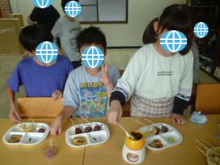 チョコレートフォンデュを用意して、みんなで楽しく美味しくいただきました(^^♪